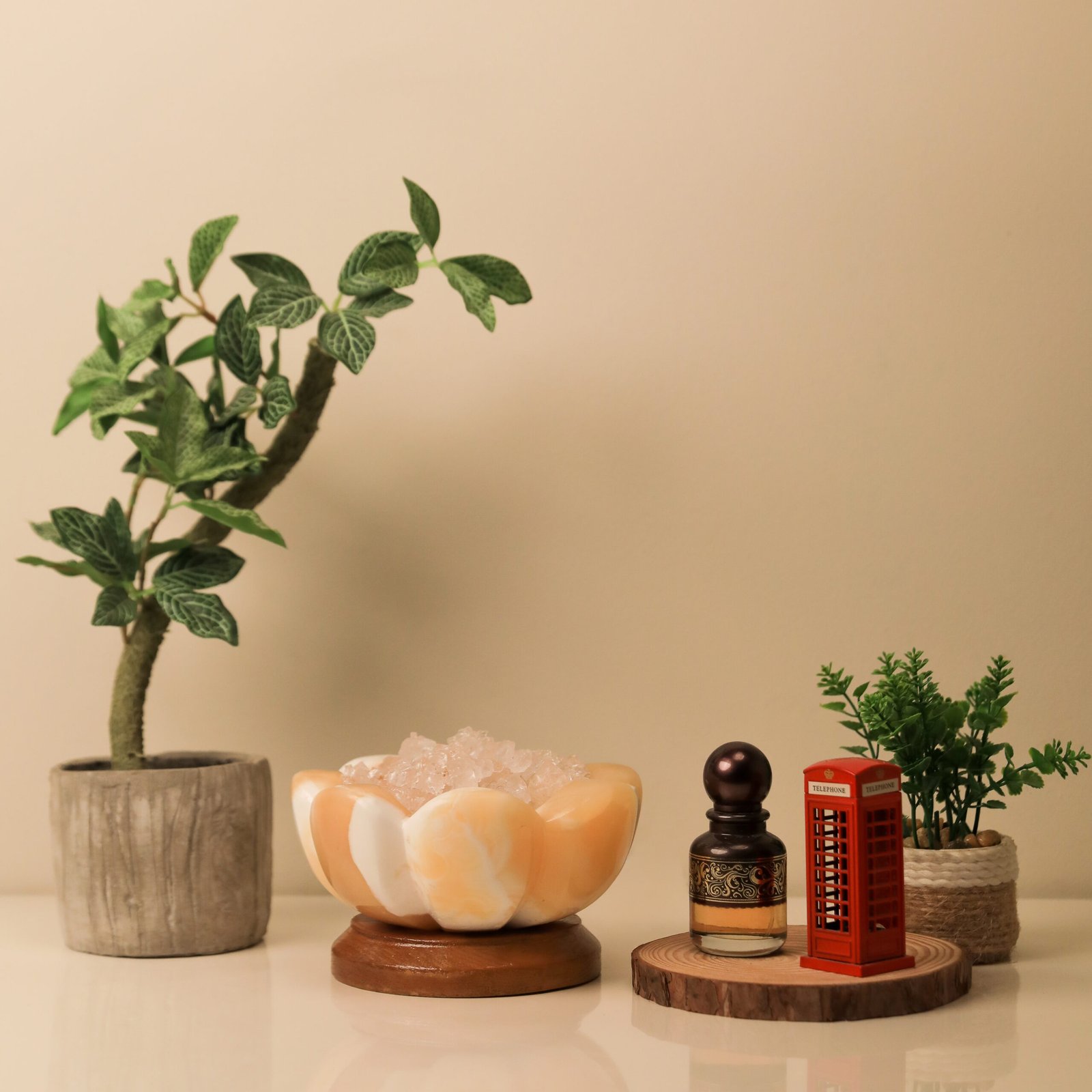 تجربة حسّية لا مثيل لها؛ قطعة ديكور فريدة من خامات طبيعية، مصنوعة يدويًا من صخور الجبال وكريستال الملح الصخري، بضوءٍ دافئ وهادئ. يُضاف العطر مباشرة على أطراف الملح لينساب بلطف في المكان، وتحمل عناصر أيونية طبيعية تمنح إحساسًا بالهدوء والتوازن وسط الأجهزة الحديثة.