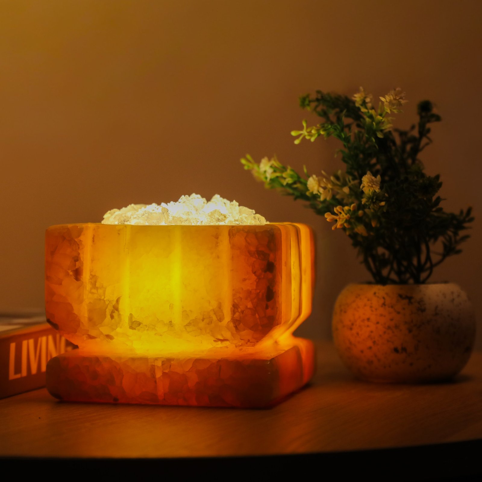 تجربة حسّية لا مثيل لها؛ قطعة ديكور فريدة من خامات طبيعية، مصنوعة يدويًا من صخور الجبال وكريستال الملح الصخري، بضوءٍ دافئ وهادئ. يُضاف العطر مباشرة على أطراف الملح لينساب بلطف في المكان، وتحمل عناصر أيونية طبيعية تمنح إحساسًا بالهدوء والتوازن وسط الأجهزة الحديثة.