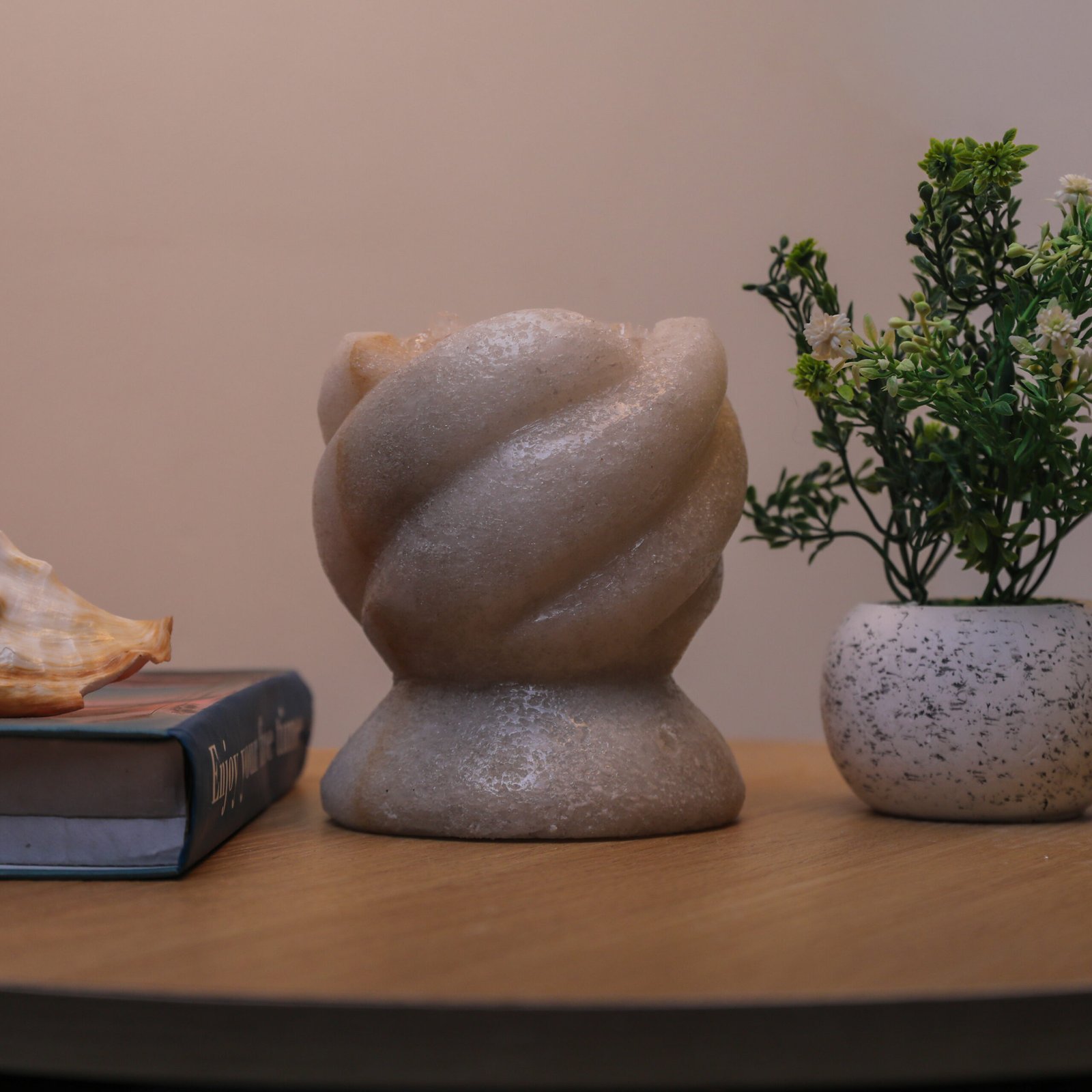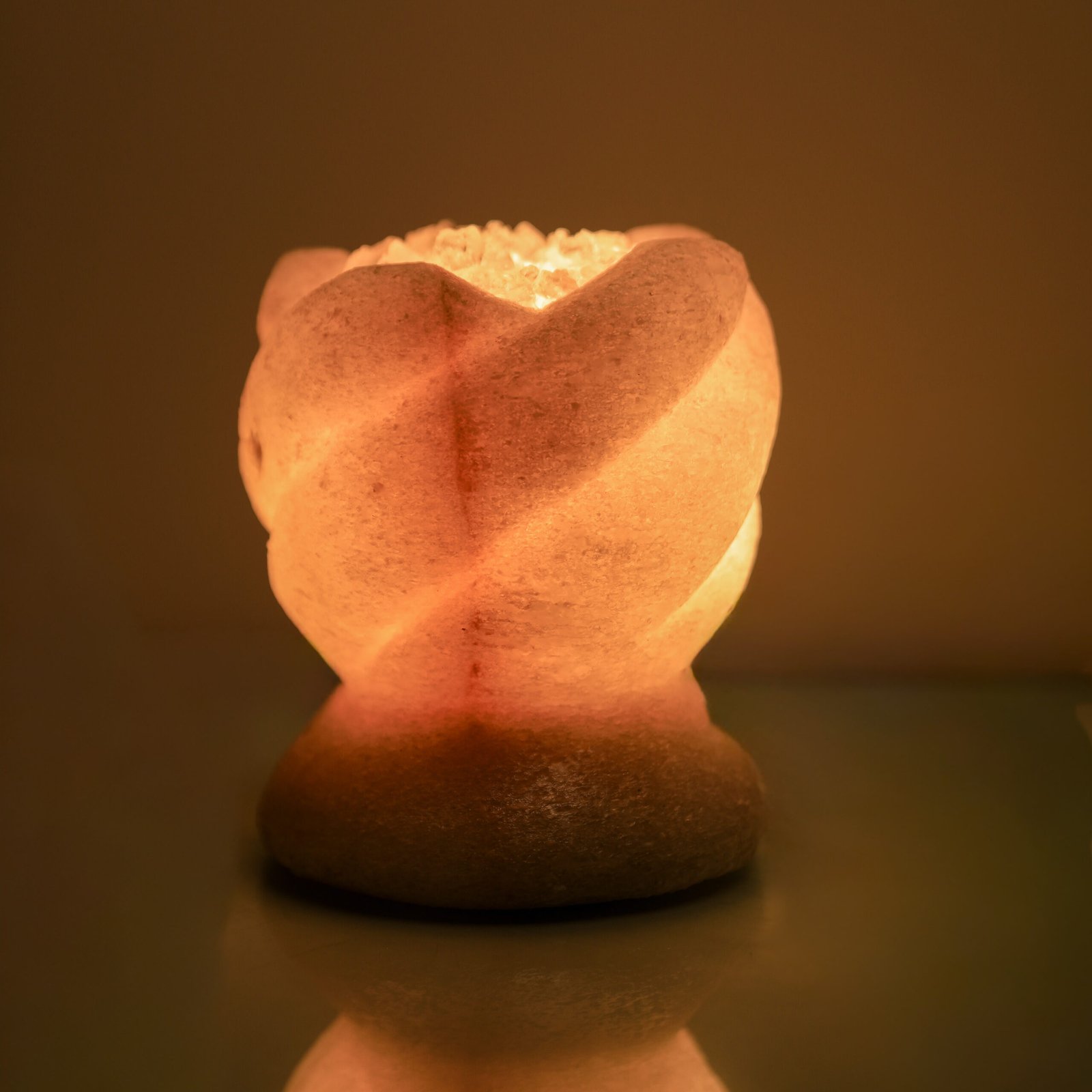حالة لا مجرّد حضور؛ قطعة ديكور فريدة من الملح الصخري الطبيعي، بنورٍ دافئ وتوهّجٍ هادئ. يُضاف العطر على جوانبها لينساب بلطف في الأجواء، مانحةً إحساسًا بالهدوء والراحة.