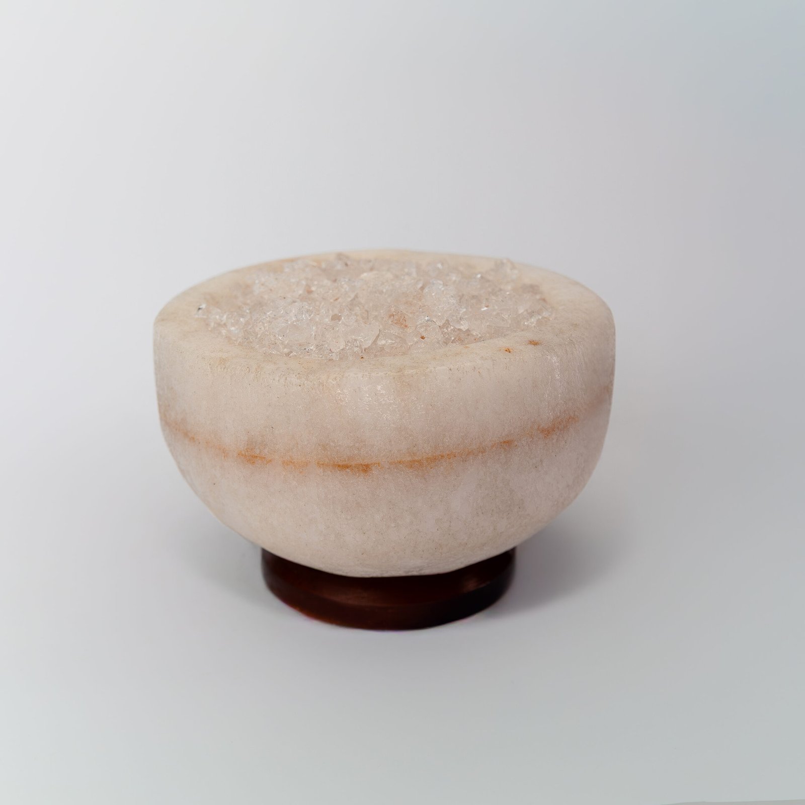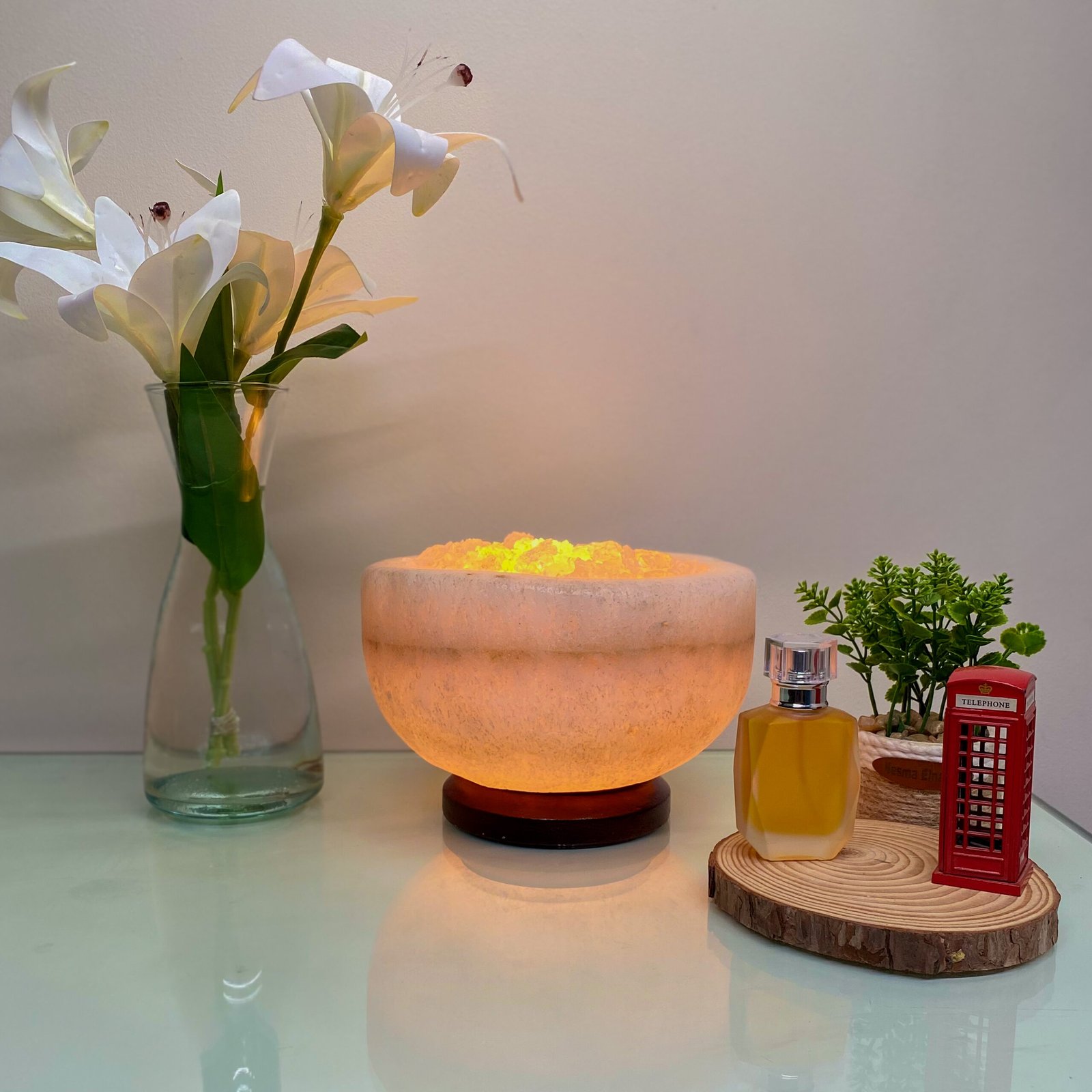 A state beyond mere presence; a unique décor piece made from natural rock salt, featuring a warm light and a gentle glow. Fragrance is applied to its sides, softly flowing to the surroundings and creating a sense of calm and comfort.