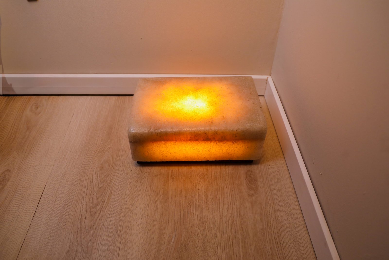 A state beyond mere presence; a unique décor piece made from natural rock salt, featuring a warm light and a gentle glow. Fragrance is applied to its sides, softly flowing to the surroundings and creating a sense of calm and comfort.