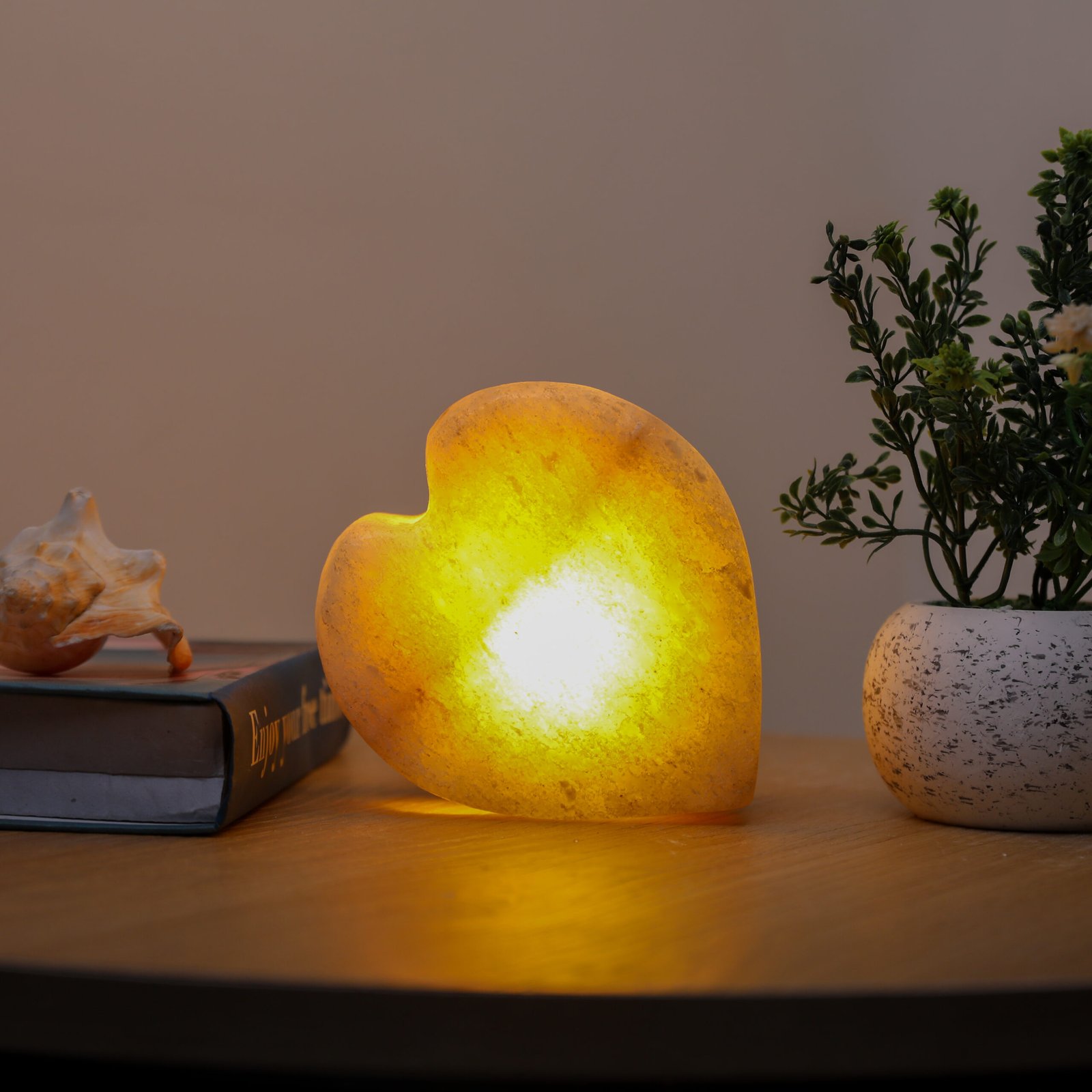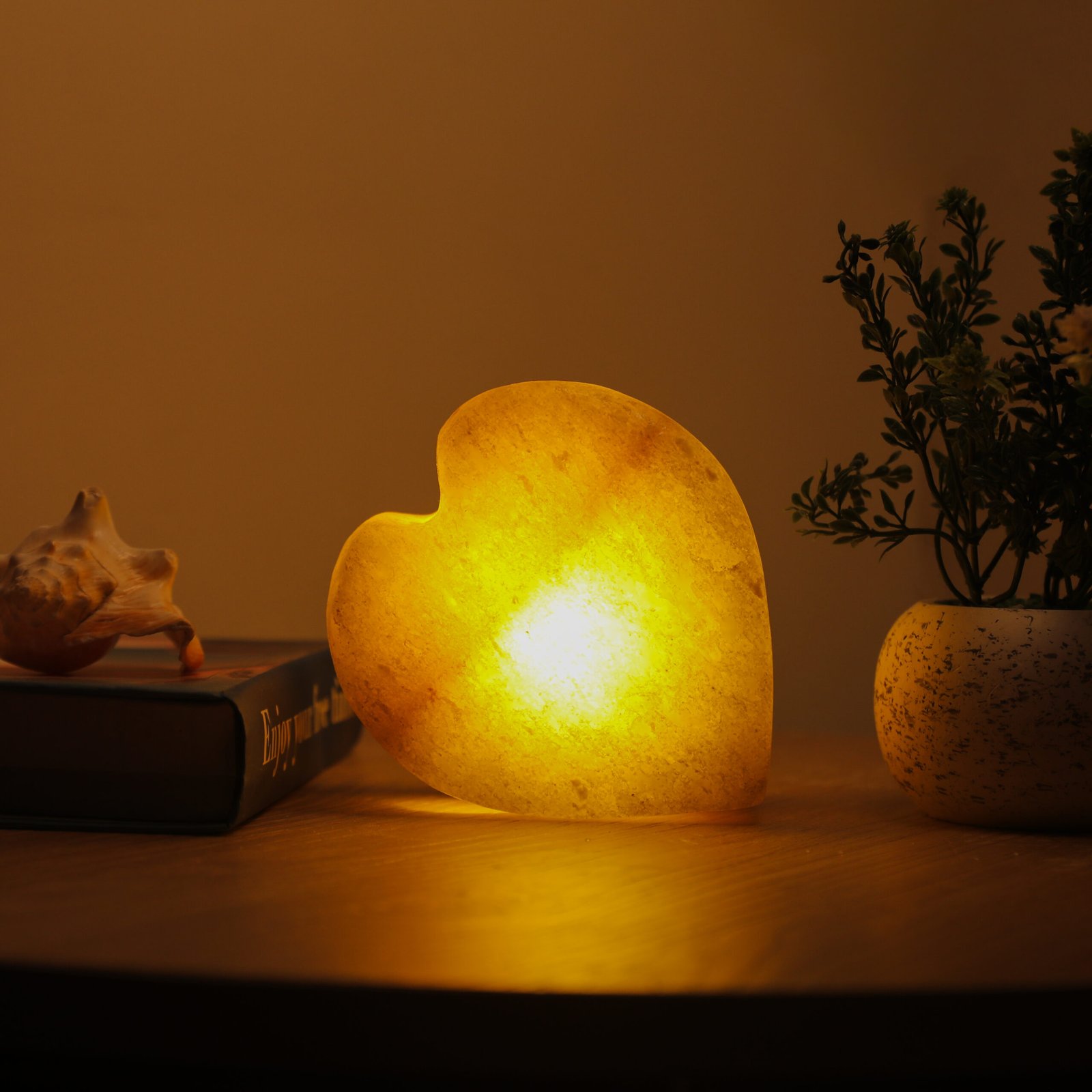 A state beyond mere presence; a unique décor piece made from natural rock salt, featuring a warm light and a gentle glow. Fragrance is applied to its sides, softly flowing to the surroundings and creating a sense of calm and comfort.