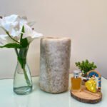 A state beyond mere presence; a unique décor piece made from natural rock salt, featuring a warm light and a gentle glow. Fragrance is applied to its sides, softly flowing to the surroundings and creating a sense of calm and comfort.