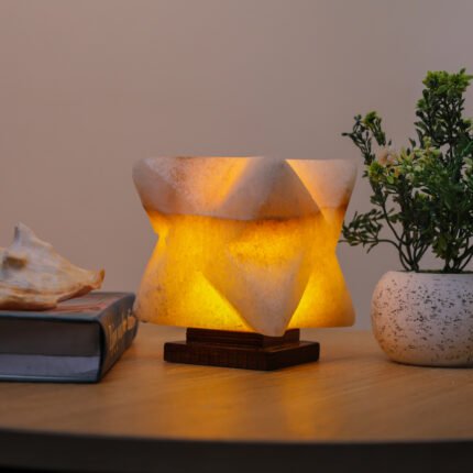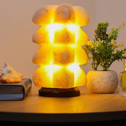 A state beyond mere presence; a unique décor piece made from natural rock salt, featuring a warm light and a gentle glow. Fragrance is applied to its sides, softly flowing to the surroundings and creating a sense of calm and comfort.